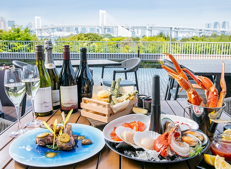 ヒルトン東京お台場内「シースケープ テラス・ダイニング」のテラス席にて9月30日(日)までオープン中の期間限定のラウンジ「Come Sail Away(カム セイル アウェイ)」では、クラウディー ベイと …